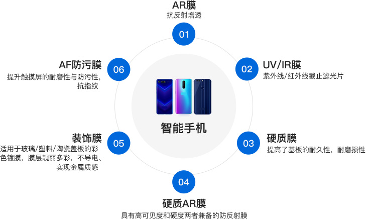 我司自主研发的系列镀膜机适用于在玻璃、树脂、陶瓷、金属等各类材质表面镀制AR膜、硬质膜、滤光膜、高反膜等各类薄膜,具有高生产效率、高稳定性、高重复性的特点,适合大批量连续作业的需求。